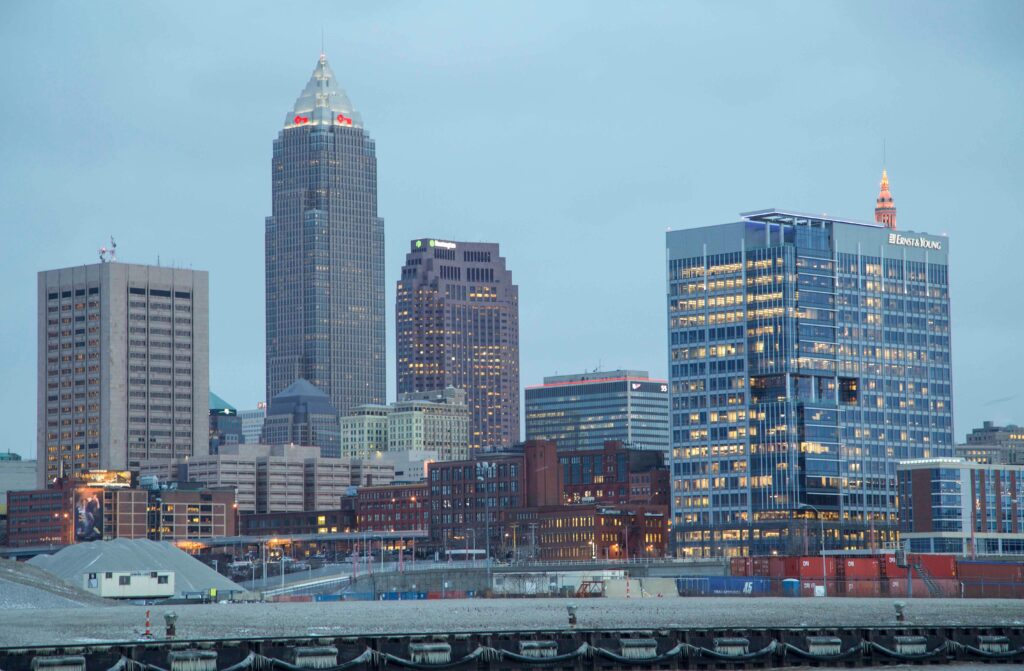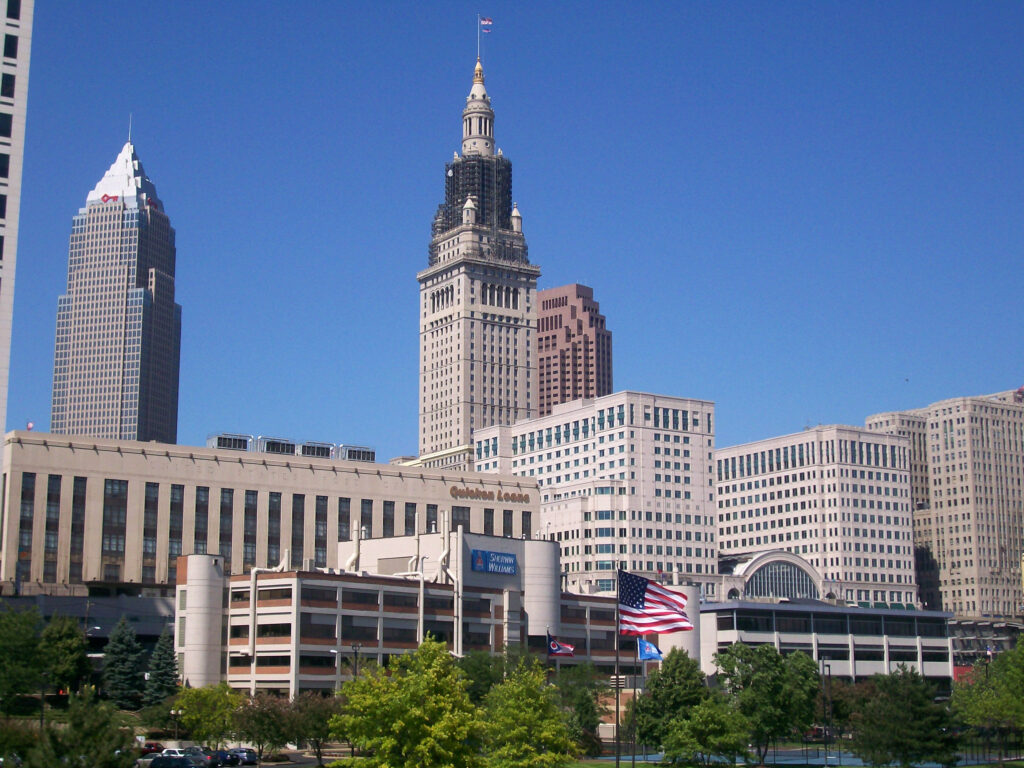 Elstara bildo: “Cleveland Night Skyline” de Erik Drost. Tondita de SashaFromSolon. Licencita sub Krea Komunaĵo Atribuo 2.0 (CC BY 2.0).